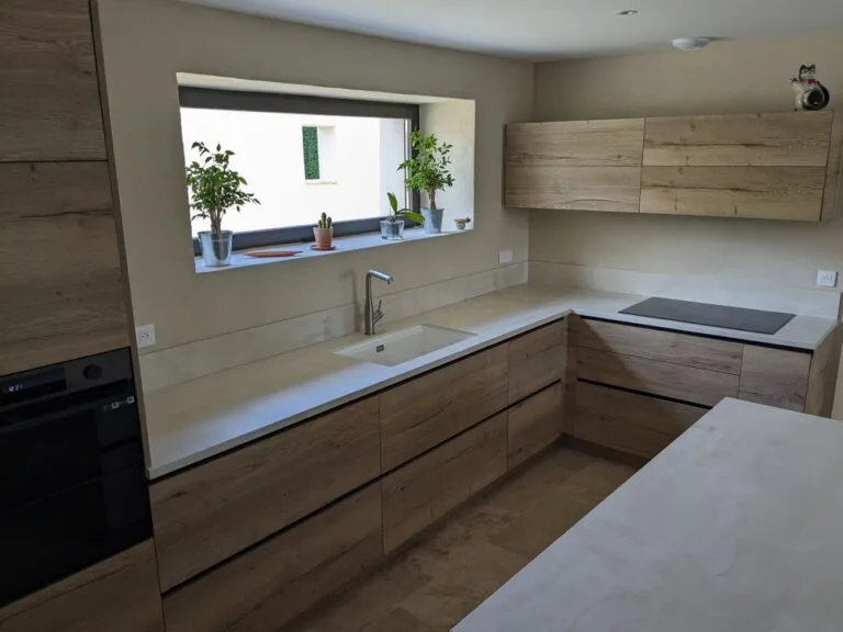 Le choix des façades est le premier facteur sur le prix. Les options vont du mélaminé et stratifié économique au bois massif ou laqué haut de gamme. Chaque matériau a un prix, une durabilité et un rendu esthétique différents. Opter pour des façades réalisées avec des matériaux supérieurs augmente l’investissement initial. Nous passons parfois du simple au double voir plus.